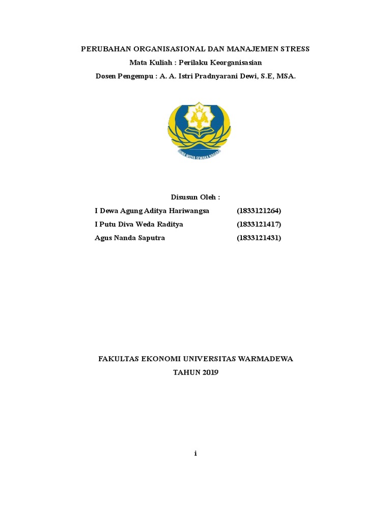 Makalah disusun dan disampaikan pada acara talkshow motivasi dan manajemen stress. Bersiap diri dan organisasi dalam menghadapi perubahan. Prinsip dan kode etik dalam bisnis. Tujuan manajemen stress untuk perubahan organisasi dan manajemen stres. Manajemen sebagai ilmu dikemukakan oleh luther gullich manajemen adalah suatu bidang pengarahan yang berusaha memahami mengapa dan bagaimana orang bekerja sama untuk mencapai sebuah tujuan. Bank & lembaga keuangan bab 13 bank & lk di dalam. Documents similar to manajemen stress dalam organisasi. Jika ada pertanyaan, silakan ajukan pertanyaan anda pada kolom di bawah ini. Mendefinisikan manajemen pengetahuan dan menjelaskan arti pentingnya.8. Tugas kelompok :diandesmitadoddynaqiyahwidyauniv.krisnadwipayana ekonomi manajemen. Resistances to stress, kemampuan untuk dapat bekerja dalam. Tujuan manajemen stress itu sendiri adalah untuk memperbaiki kualitas hidup individu itu. Menjelaskan variabel perbedaan individu yang memperlunak hubungan antara stres dan hasil.